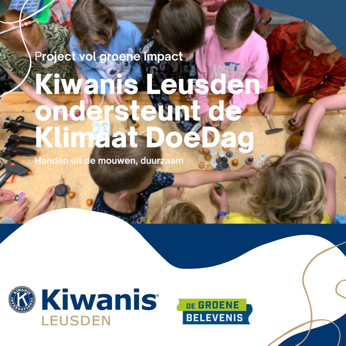 Als Kiwanis zijn we verheugd te mogen aankondigen dat wij dit jaar wederom financieel én met “handen uit de mouwen” (HudMo) betrokken zijn bij de Klimaat DoeDag — een prachtig initiatief van De Groene Belevenis dat kinderen laat ervaren wat duurzaamheid écht betekent.